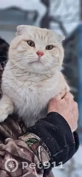 Вислоухий (шотландский?) светло-рыжий кот, упитанный, улицы боится, к людям ласков. Ищет старых хозяев, передержку или новый дом. Военный городок, Трусово. Найден в гаражах.