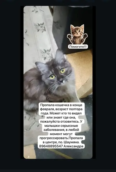 Люди добрые ,к нашему дому подбросили кошечку,стояли морозы и мы не смогли её не пустить . Жильцы подъезда купили лоток и наполнитель,видно что животное было домашнее ,кошечка сразу начала ходить в лоток и на улицу не выходит ,так и сидит целыми днями на стульчике и каждый раз,как кто нибудь выходит из квартиры ,думает ,что дверь открыли для нее ,начинает мяукать и бежит на встречу..... Очень ласковая,а мурлыкает 🥰 Мы ищем ей дом с заботливыми хозяивами ,которые никогда больше не не предадут! А усы просто загляденье ❤️ Сама она маленькая по размерам , кушает даже домашнюю еду .... Цвет серенький и белый галстук, кастрирована Живёт по адресу Ботвина 10 б второй подъезд.... 89170848048