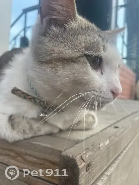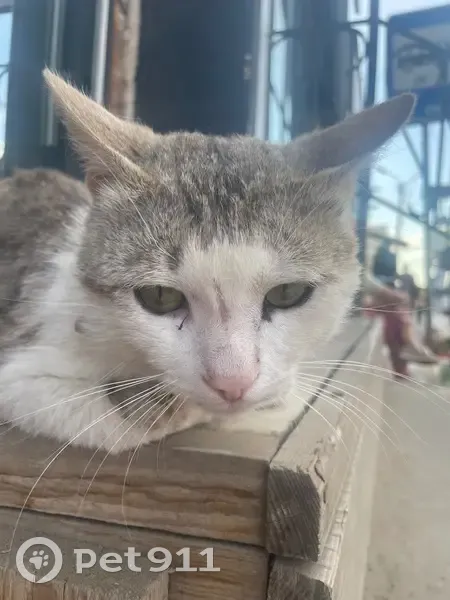 Кот возрастом примерно 1-3 года, по размеру достаточно крупный, но очень худой и слабый… Окрас серо-пятнистый на спине и боках и белый на морде, животе и лапках. Глаза ярко зеленые, кот в ошейнике!!! Ошейник белый с голубыми и красными полосами с колокольчиком. Он очень нуждается в помощи, весь в ссадинах, клещах с хромой лапкой. Ел очень быстро с аппетитом, был явно голоден. Очень приветливый, сам подходит к людям на остановке и с радостью принимает внимание!! Он явно был домашний и если он настолько похудел, значит возможно его никто не ищет и ему нужен новый дом Прошу волонтеров о помощи, я не смогла его забрать и помочь… Я была там примерно в 6-7 часов вечера, адрес ул. Магистральная 32 остановка общественного транспорта. Возможно он там где-то неподалеку около дома по адресу или в соседних дворах, но вероятнее всего так же сидит на остановке или около ближайших магазинов. ПРОШУ ПОМОГИТЕ