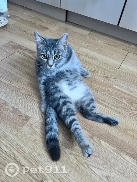 Здравствуйте! Пропала молодая кошечка серого окраса,есть полосы белого окраса. Животик белого цвета. Не породистая, без ошейника. Кошке приблизительно 2 года.