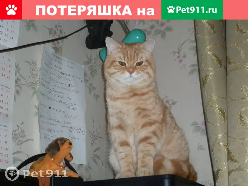 Кот шотландец, 3-х лет,не кастрированный, красивый рыже-белый, недлинный пушистый хвост.Рисунок на хвосте как-бы кольцами, маленький носик. Звать Перчик, а также откликается на малыш. История пропажа для меня неожиданная. Убежал в подъезд и далее на улицу, искали самостоятельно по подвалам и подъездам, по улицам, потом узнала что можно искать по сайтам поиска животных, 25 ноября 2019г. нашла в ветлечебнице Багира пер.Глухой. Сходила туда,но увы кота забрал Мужчина, который отбил его у собак и привез его в лечебницу. выпросила номер сотового и позвонила этому человеку. Я живу в Астрахани на "десятке", а этот мужчина взял его к себе домой в район Советского поселка, кот никогда не общался с маленькими детьми, а у этого мужчины маленький ребенок и он отдал кота своему брату в район Золотого Затона, вот там он жил несколько дней в сарае. но потом пропал, Мужчина точный адрес своего брата не дал, но сказал район Золотого Затона, ул,Александрова, конечная остановка маршрутки 52, район школы