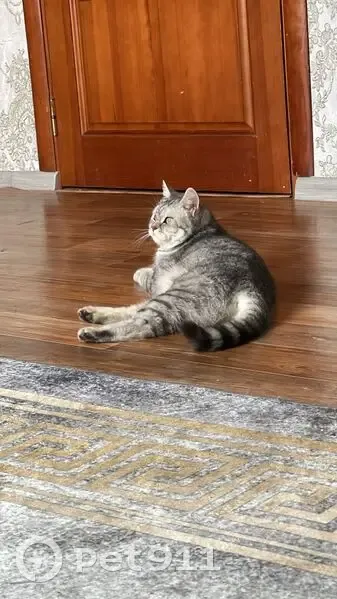 Кошка убежала со двора, улицы не знает. Пугливая и к чужим людям может не подойти. Окрас серый, лапки полосатые, низ живота белый. Возраст 1 год, беременная.