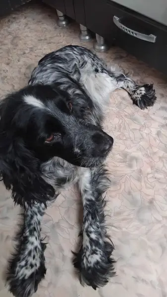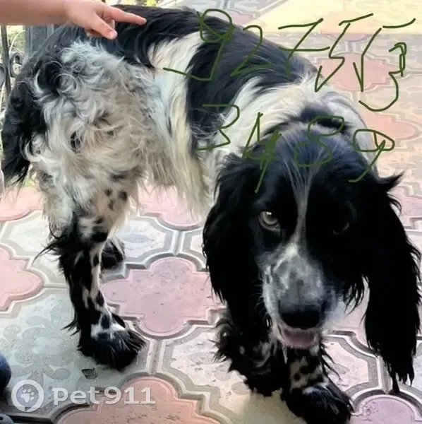 Окрас черно белый,нос с белым пятном на фото видно. Ну ушах черные плотные висюльки. Возможно есть несколько колючек,так как приехали за день до с природы. Шерсть обыислая,свисает как с ног так и сбрюха и хвоста. Пожалуйста,при любой информации звоните 89275533489 зову Кирилл