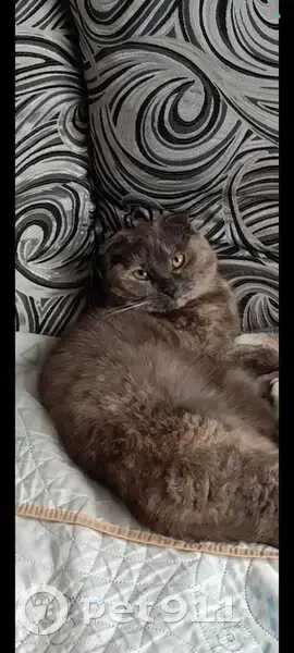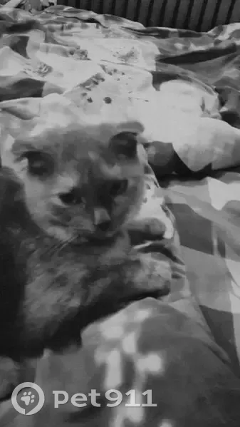 Окрас серый, вислоухая порода, небольшого роста, хвост коротковатый. Пропала возле ветеринарного магазина, куда мы её привозили. Когда садились в машину, она выпрыгнула и убежала. Кошка не полностью домашняя, привыкшая ходить на улицу, но пропала в незнакомом для неё районе. Кушает только покупной корм. Очень добрая и ласковая.
