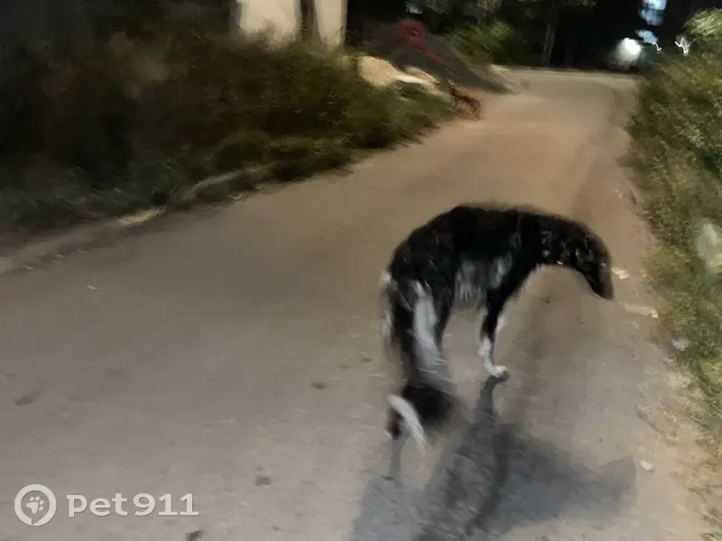 Бегали две собаки: 1) Русская псовая борзая, черная с подпалинами, в ошейнике 2) Питбультерьер Бегали вместе, по помойкам лазили явно голодные. Воспитанные, команды знают. Мы покормили. Но взять к себе не могли - у нас кошки.