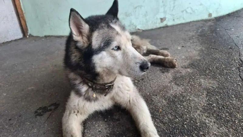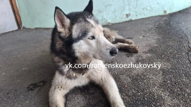 Хаски, чёрно- белого цвета, мальчик, добрый, ласковый.