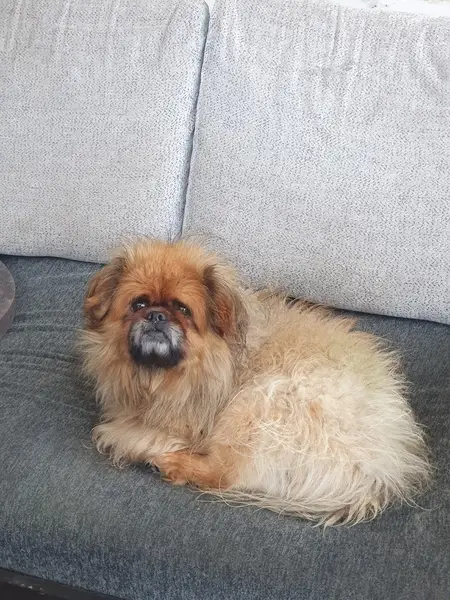 Коричневый-рыжий окрас, язык не полностью фиолетовый, убежала