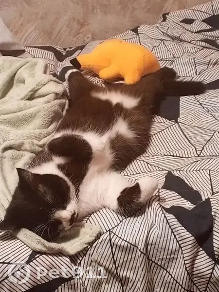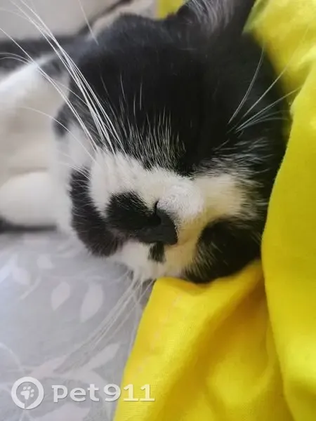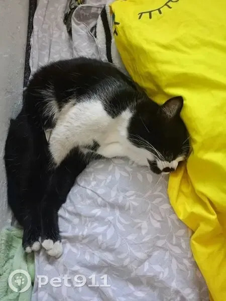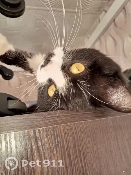 Черно-белый окрас, спина и хвост черные, грудка белая, на лапках белые "носочки", на мордочке черное пятнышко в виде "усов". Он громко и протяжно мяукает, можно сказать немного "противно".Граф ушел и не вернулся, обычно каждый день приходил домой покушать. Я очень прошу вас оказать нам помощь в поисках нашего любимца, он очень важный и дорогой член нашей семьи