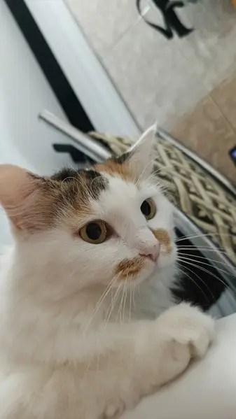Найдена кошка трехцветная, с черным ошейником, взрослая, пушистая, с 15 января2017 прибилась к дому №17А по ул. Ак. Жука, видно, что домашняя, очень растерянная, кормим, но в руки пока не дается, хозяева - звоните по тел. ..., помогу найти (прячется в подвале часто)