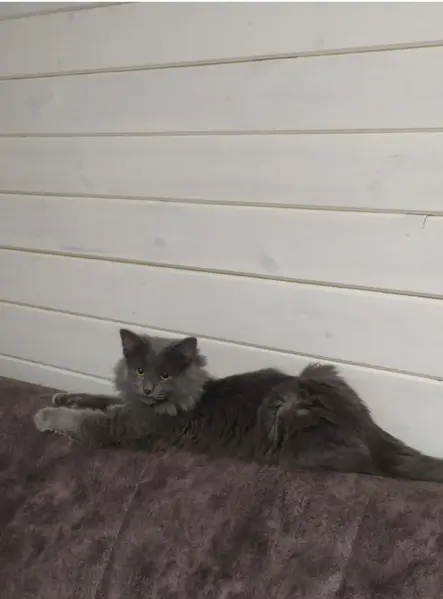 Серый окрас, вислоухая, найдена около частного дома