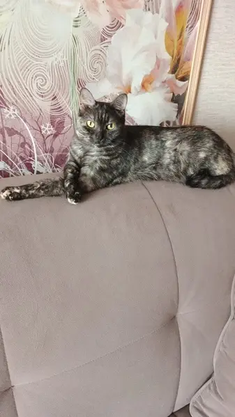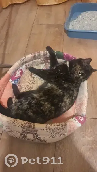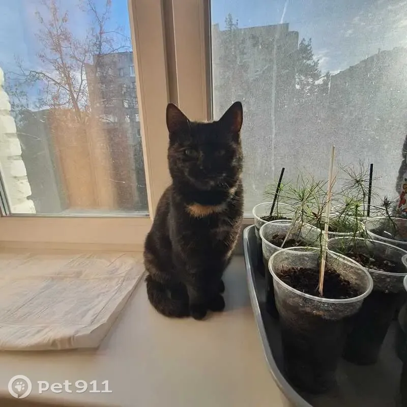 Кошка на вид до года. Сидела на люке несколько дней. Очень ласковая. Идёт на руки.