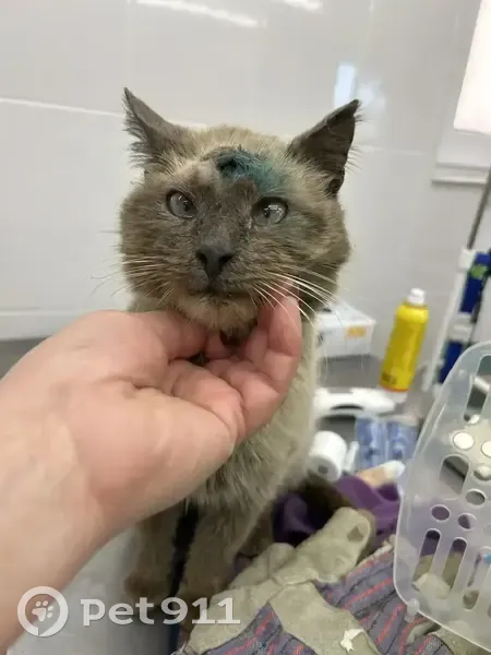 В районе ул. Чмстопольская , Балашиха найден кот мальчик, грязный, худой голодный на голове травма. Судя по худобе врачи заключили, что потерялся месяца три назад, похож на сиамского, глазки косят. Ласковый, спокойный, в ветеринарке процедуры перенес спокойно . Ищем хозяев, звоните.