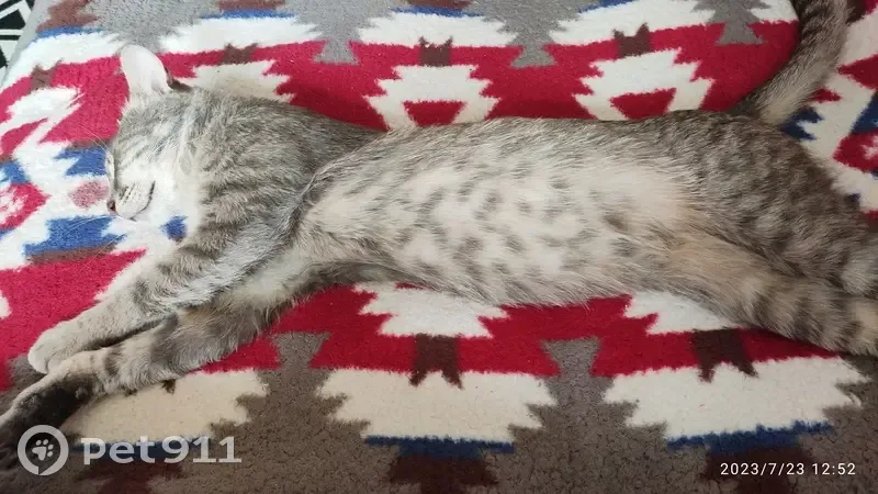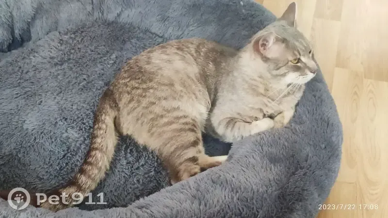 Молодой кот, предположительно породы серенгети, окрас серебристый табби. Очень худой, но крупный, 5 кг. На высоких лапах. Появился около мазина. Здоров. Осмотрен ветеринаром, кастрирован. Ищем старых хозяев. Если хозяин не найдется, то ищем новых. Кот с характером, желательно одним питомцем. Ходит в лоток, знает пеленку. Ласковый, но с характером. Ест сухой корм. Отдается со своими вещами: домиком, лежанкой, лотками, кормом. Оставить нет возможности, т.к. нападает на собаку.