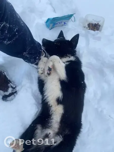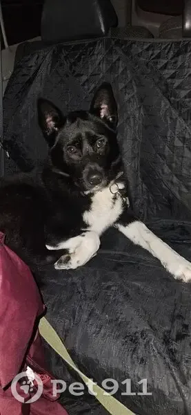 Молодой пес, знает команды, в ошейнике без адресника. Похож на лайку
