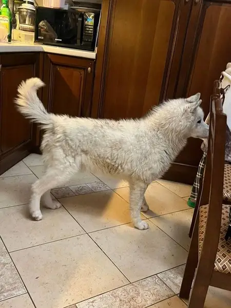 25 января 2026 года был найден кобель хаски/лайки. Г. Балашиха. В 13.00 был замечен в мкр Северный. Позднее в мкр. Южный около магазина Лента на Горьковском шоссе был придержан. Зубы белоснежные, возраст до 2-х лет. Клейма нет. Не кастрированный кобель. В стрессе Добрый. Скорее всего жил в вольере, набивная шерсть, в подъезд еле вошёл. Не голодный На нем коричневый кожаный ошейник, кончик ошейника оборван. Ищем ПОКА прежних владельцев. @udashka8 Поиск животных (отряд Тоси), ветка "найдена хаски/лайка" https://t. Me/tosya_team/4519