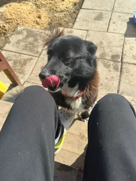 Добрый день. 27.03.22 найден кобель. Молодой. В старом грязном ошейнике. Найден г. Балашиха, Квартал Янтарный, ул. Кольцевая д. 14. Подбегал ко всем проходящих. Контактный. Пошёл за нами и запрыгнул в машину. Возможно, с дач из п. Восточного. Но он был крайне растерян, бегал и не знал дороги назад. Его люди увидели в Янтарном с утра, также бегал растерянный. Мы его нашли в 16 часов, его состояние было таким же, искал, в машине сразу уснул. Фото смогли сделать только это. Есть видео. Ищем старых хозяев. Спасибо