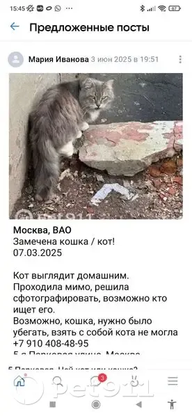 Найденные животные Москва, фото: Кошка найдена, ул. Михайлова, 30А к4