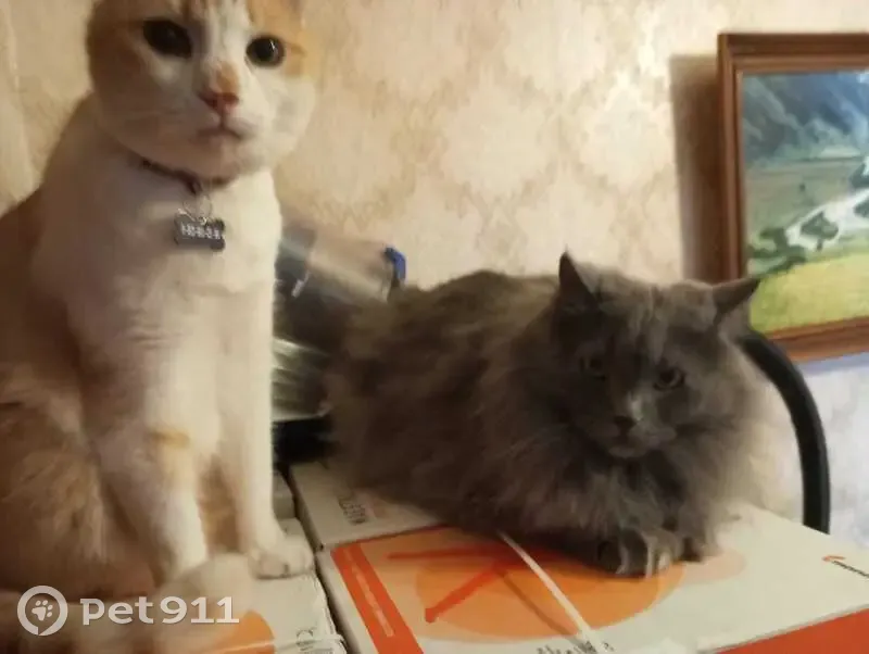 Убежали с передержки. У обоих по два ошейника с жетоном и против блох/клещей. Кузя рыже-белый, на носу рыже-серое пятно, 10 лет, метис. Тоша - серый, длинношерстный, метис с сибирскими кровями, 2.5 года. Оба кастрированы.