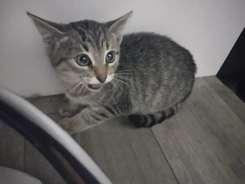 Кошечка молодая, 5 месяцев, худенькая, окрас серый в полоску. Муж нёс на осмотр в вет. Клинику, она чего-то испугалась и вырвалась, из шлейки выскочила и убежала. Район ДК Балашиха.