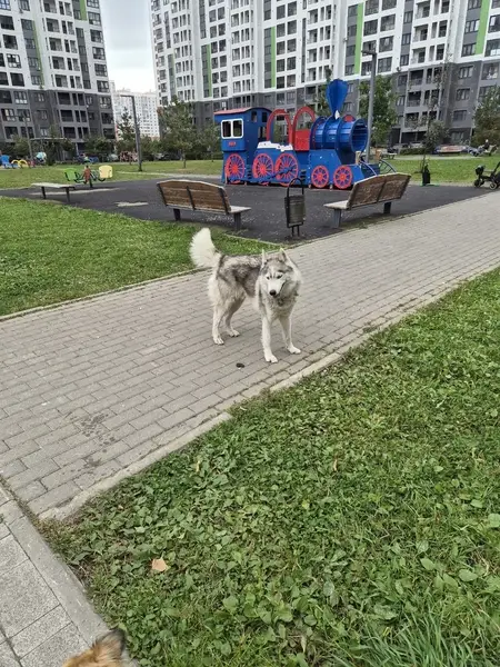 Сбежал из вальера, в Балашихенским районе, с ночи 25 мая 2016. Серый с разными глазами. Был в шлейке, в ошейнике от блох и кожаном с собачками. Откликается на кличку Макс. Есть особые приметы. Мог побежать куда угодно, очень самостоятельный. Балашихенский район