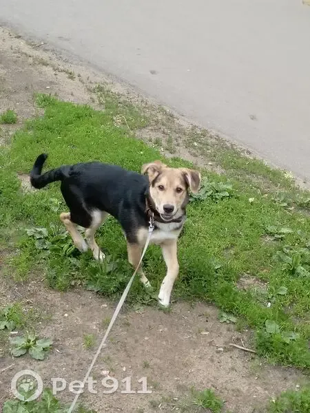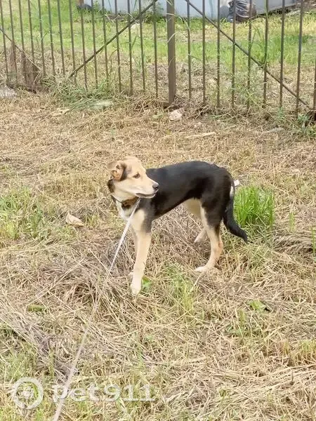 Тёмная шерсть на большей части тела, морда, грудь и лапы золотистые, Метис-Овчарка. Без ошейника, очень пуглива. Сорвалась с поводка из-за испуга, последний раз видели соседи в 5 вечера второго августа