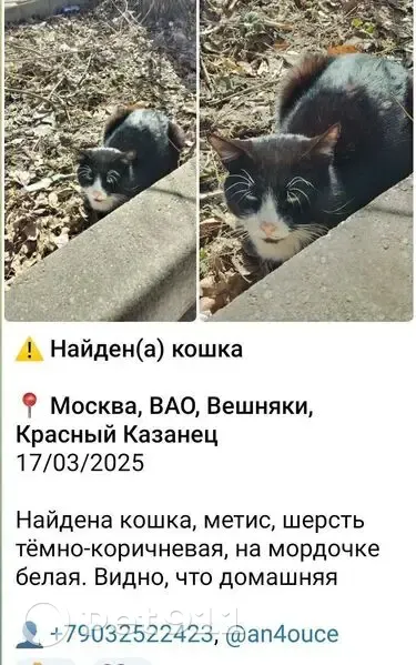 Объявления о пропавших и найденных животных, Москва, фото: Кошка найдена, ул. Красный Казанец, 6