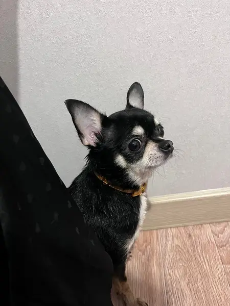 Чихуахуа ,окрас черно с белыми пятнами,хвостик пушистый