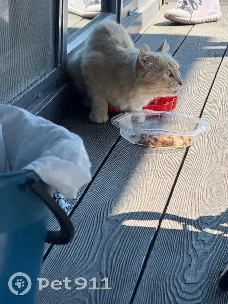 Персиковый кот взрослый, но худой. Не кастрат. Пугливый,но не дикий. Пришел когда гуляла наша кошка на даче, до этого не видели его. Стал каждый день приходить, кормим.