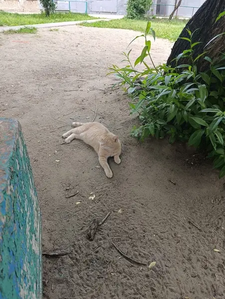 Предположительно кот, достаточно взрослый. Рыжий с белыми лапками, грудью и мордой, на носу рыжее пятно. Сидел у выхода из магазина, контактный, не пугался, пошёл на руки.