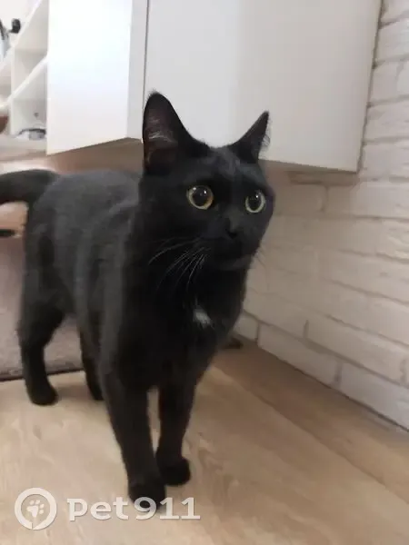 Черная кошечка, с белым пятнышком на грудинке. Очень умная, но вредная) Ворвалась в квартиру, когда я выходила из нее. Очень кричала, металась. Пахнет шампунькой.