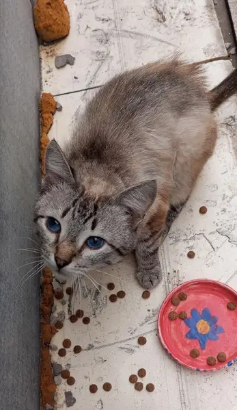 Серый кот. Хвостик чуть темнее. Большие щёчки. Не кастрированный. Скорее всего уже достаточно взрослый. Мяукает иногда с хрипотцой. Умен. Знает чо такое ласка, но на руки особо не даётся. Ведёт на улицу в поисках дома, но теряется среди них. Домой на передержку не пошел, панекуют и ломиться на улицу. На данный момент накормлен и сидит в крытой ограде. Прибился к дому 1-2 дня назад, когда шел дождь, спрятавшись на домик кошачий, что стоит на улице. Очень ищем хозяев...