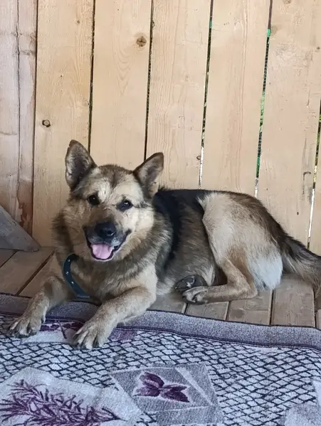 Собака привязанна к человеку, добрая, возрастная.