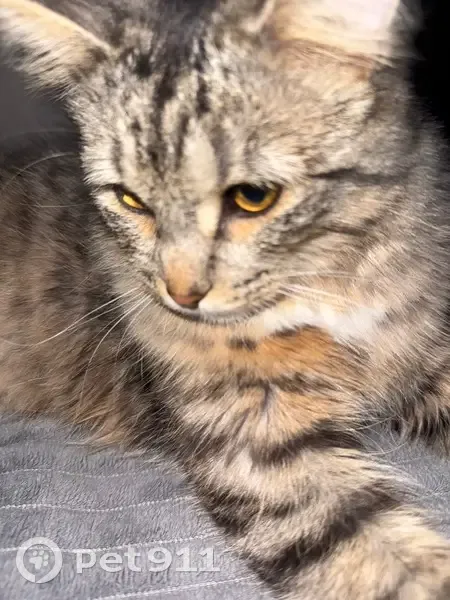 Пушистый хвостик , боится чужих людей пока не обнюхает, очень ласковый , откликается на сына -сына ,желтые глазки , видели похожего кота у ДК на Антона Петрова, не нашли его там , вознаграждение за поимку