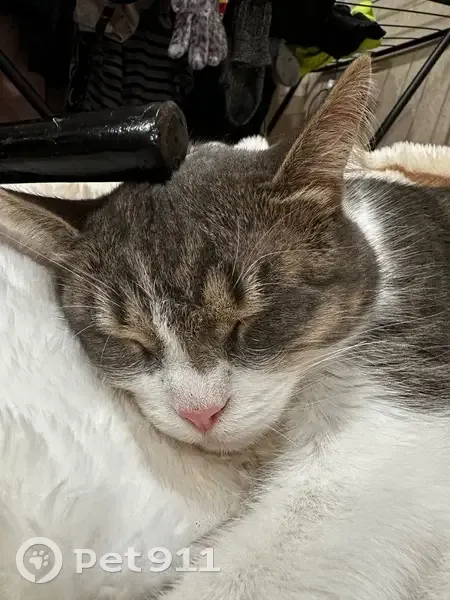 Окрас бело-серый, с темными полосками на спинке и хвосте, розовый носик, черно-розовые подушечки лап, желтые глазки. Пугливый, на «кис-кис» отзывается через раз. Порвал сетку-антикошку и выпал из окна, убежал 25.07.2025 в 15:00-15:20. Предположительно находится в ближайших дворах или частном секторе.