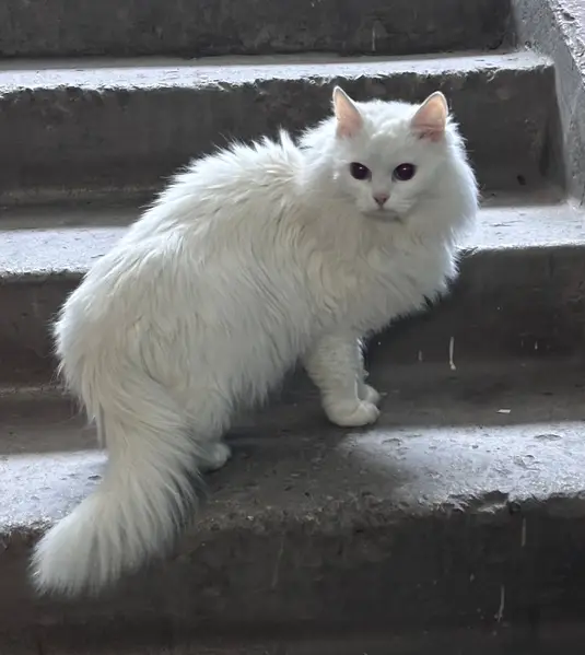 Убежала кошечка , чисто белая , мейн кун породы кошка по размеру крупная , может сильно быть напугана не подпускать к себе