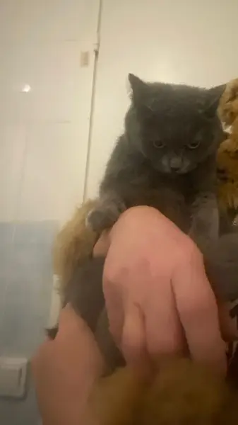 На остановке Озерная, пропала кошка, окрас голубой, серый, пепельный, глаза желтые, на животе белая галочка, убежала в сторону садов
