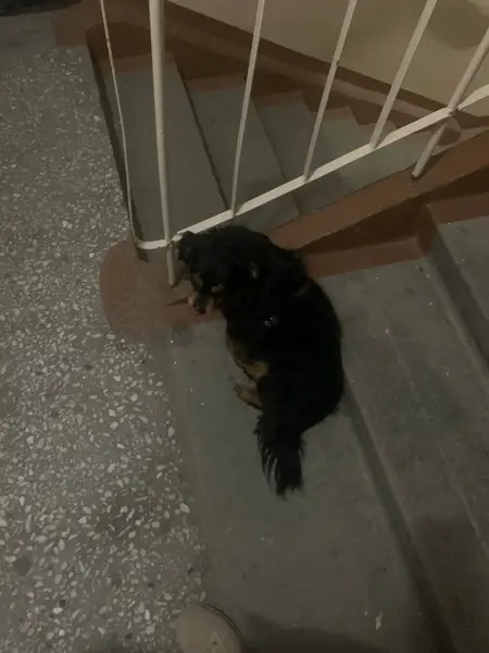 Мордочка с сединой,на голове тоже не много седых,зубов передних нет.