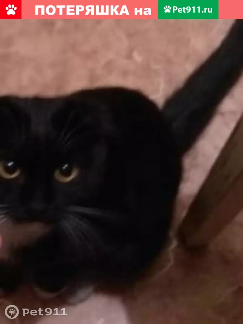Потерялся кот , чёрного окраса ,грудка белая...