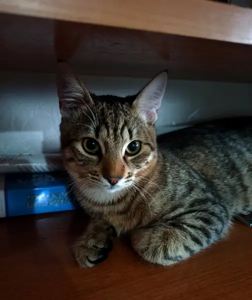 Нашла рядом со зданием "гемотест" кошечке примерно 5/6 месяцев , очень ласковая , к лотку приучена , на левом глазике был конъюнктивит , здорова полностью, к ветеринару возили