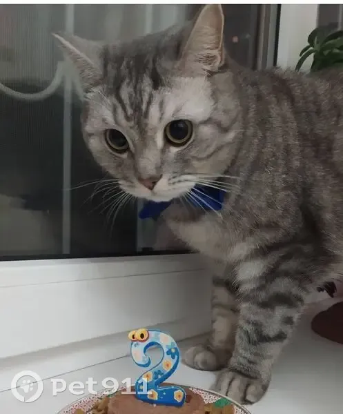 Окрас тоже называется вискас, как кот из рекламы про корм вискас -серо-голубой отлив. На нём был голубой ошейник. В одном из ушей есть родинка-папиломка, прям как отросточек. Вышел вечером из дома во двор и не вернулся. Спустя 3 дня его видели соседи в огородах, через несколько дней, если не ошиблись, видели у магазина на соседней улице Южной.