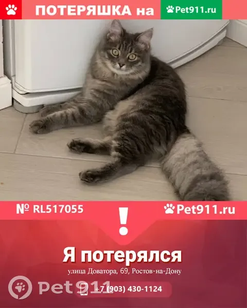 Потерянные животные Батайск, фото: Пропал кот на Советской 78 в Батайске