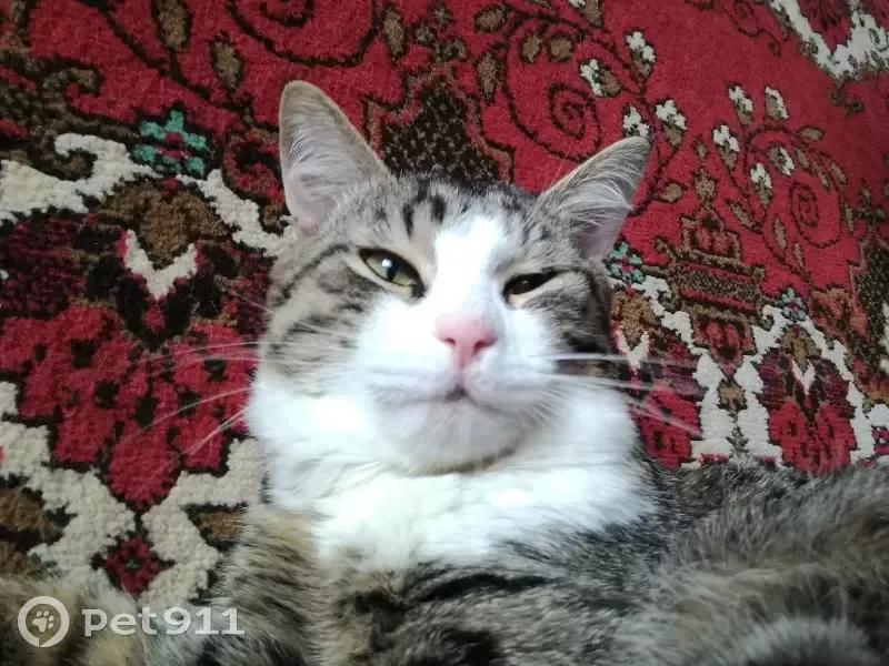 Кот Шустрик. Потерялся у Ветклиники. 01.07.2022. Белая Холуница. После укола, выпрыгнул из корзинки и убежал. Боялся и не подходил. Потом скрылся. Найти не нашли. Ему 1.3 года. Сам тёмного окраса. В полоску чёрную спина и хвост. Мордочка белая, лапки белые.