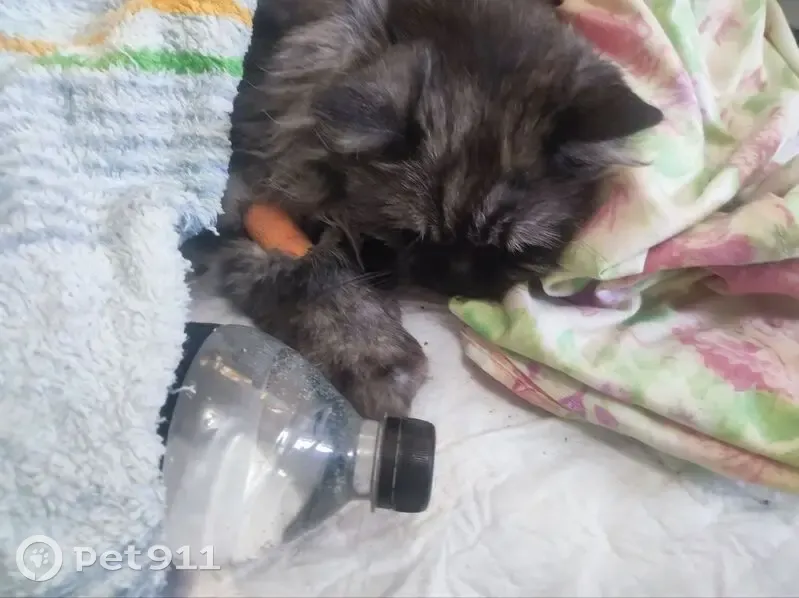 25.01 была найдена кошечка! К ней привели душераздирающие крики, кошечка примерзла всем телом к бетону и уже покрылась льдом! Еще бы час и скорее всего, её бы не стало. В ветклинике ей сделали все необходимое, девочка была сильно обезвожена и температура даже не показывалась на градуснике. Сейчас кошечка у нас, она даже поднимается сама на лапки, кушает и пьет водичку. Мурлыкает, когда ее гладишь. По внешним признакам и окрасу(черный дым) очень похожа на мейн куна.