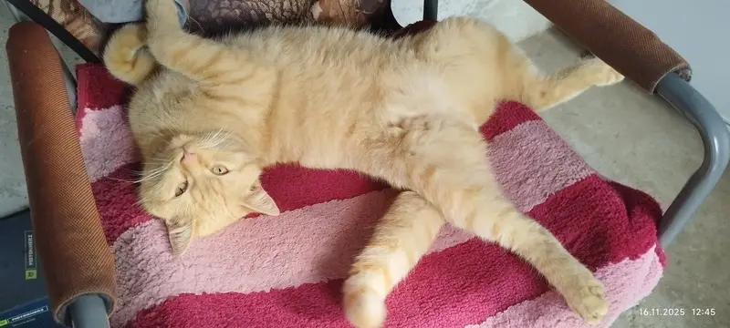 Большой рыжий кот, весом 5кг, не кастрирован. Сидел на дороге с закрытыми глазами. БОЛЬНОЙ ( чихает, на голове царапины). Кот домашний, так как, как только принесла в квартиру, сходил в туалет на лоток. Добрый, очень спокойный, постоянно спит. Искренне надеюсь, что его не выбросили, а потеряли и хозяева найдутся, так как кот очень хороший и видимо скучает за прежним домом. Если хозяева не объявятся, то буду искать новый дом. Поэтому буду рада, если кто нибудь захочет подарить дом прекрасному рыжему котику).