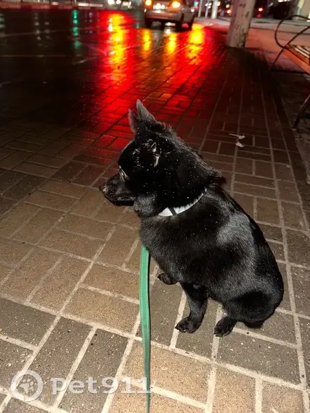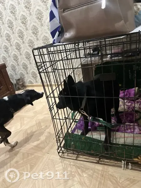 Полностью черный, зеленый поводок и ошейник. Знает команды, не агрессивный вовсе. Сказали во вкусно и точка, что его искала женщина с ребенком, но она не оставила свой номер.