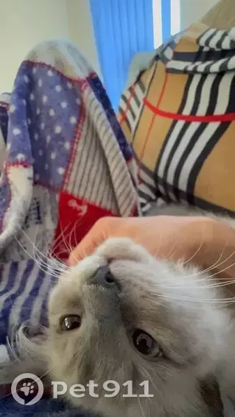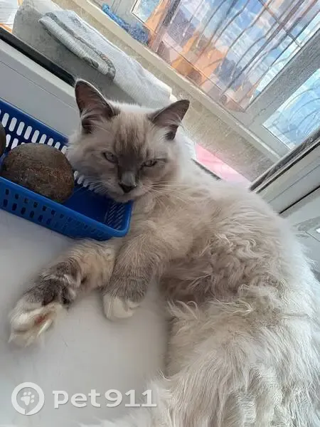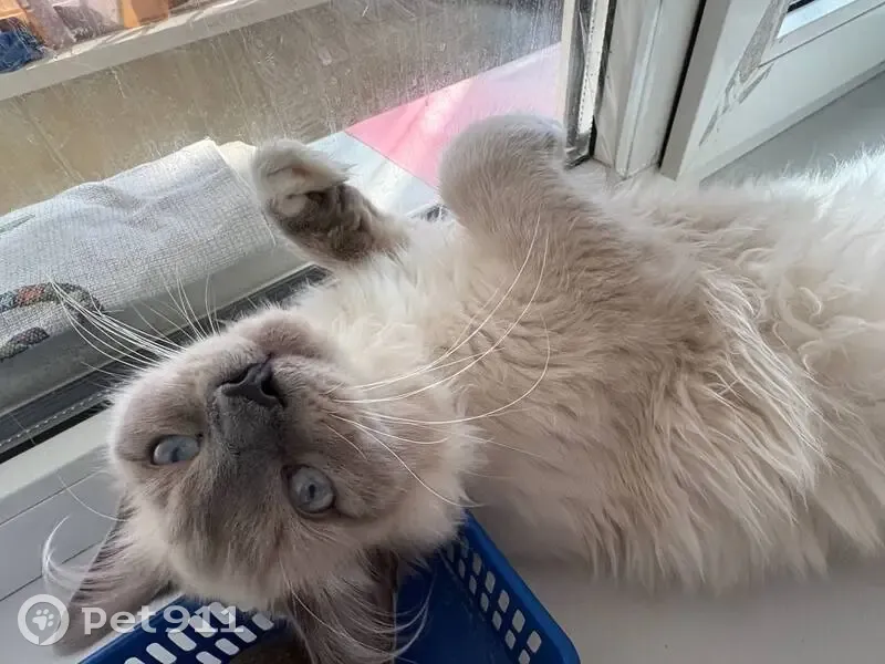 Порода невский маскарадный. Предположительно упал с 10 этажа,но никаких следов у дома обнаружено не было. Возможно в подвалах. Внешность: Глаза голубые,окрас бело-серый.