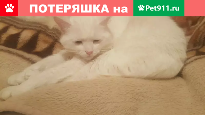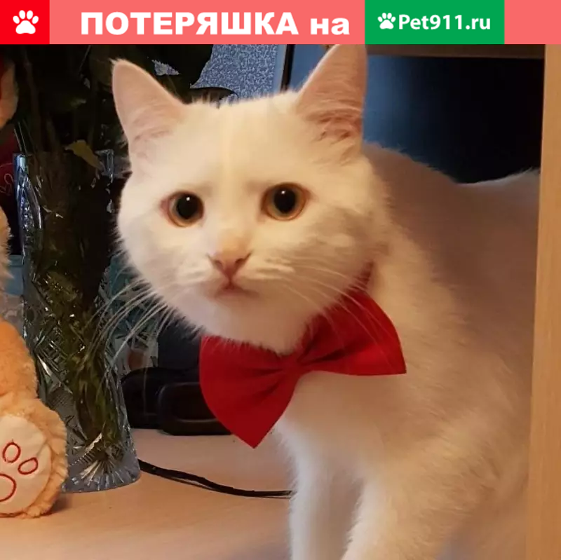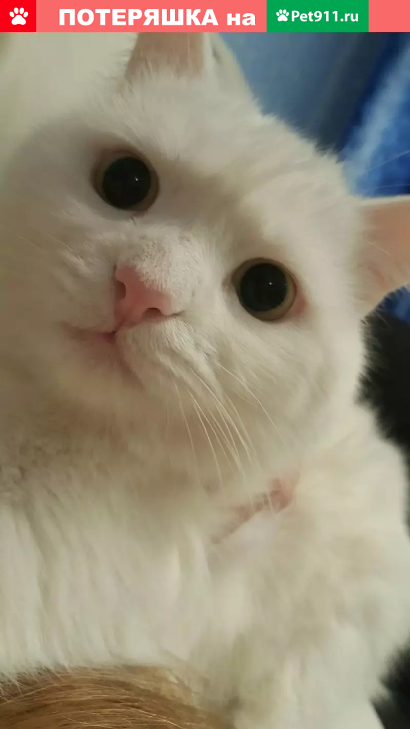 Пропал кот! Возраст 3 года. Белый окрас , сибирской породы. Отзывается на кличку Зефир. Кои домашний , может быть напуган и диковат!Нашедшему просьба вернуть за большое вознаграждение!