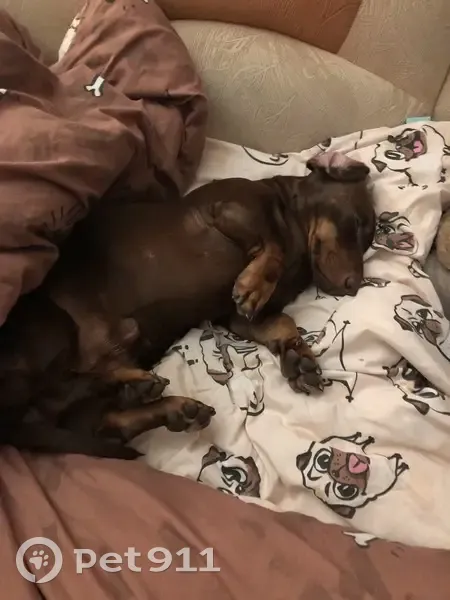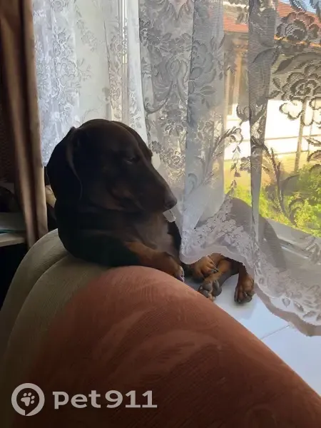 Порода - такса, с мощным грудаком и лапами. Окрас - шоколадный с красноватым отливом. По габаритам примерно - длина 50 см, высота 30 см. Выбежал из дома без ошейника. Частный сектор на против автовокзала, возле садика. Убежал в направлении тц Форт. От неожиданности и страха, может прикусить, но так он дружелюбный