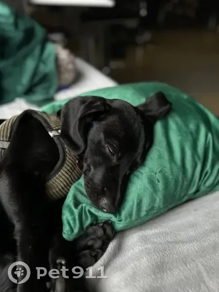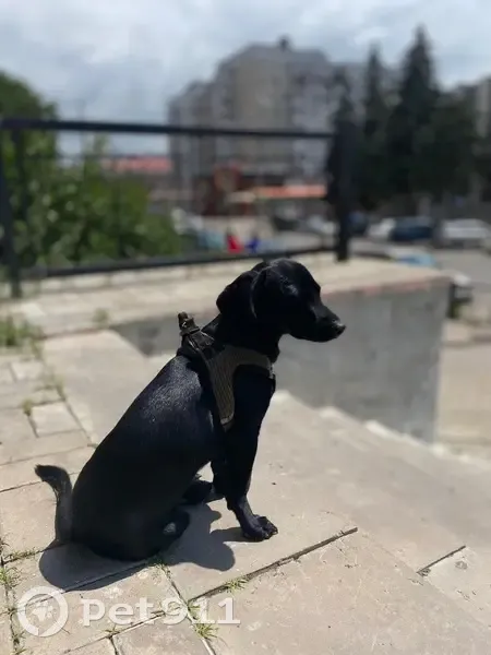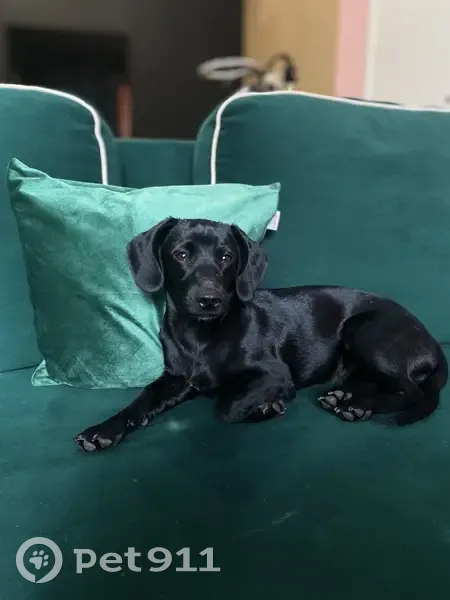 Собака 7 мес, любит гавкать, но на самом деле не кусается, отзывается на кличку Олег, на шее нет ошейника, полностью черный с белым пятнышком на груди, похож на таксу только чуть выше ростом