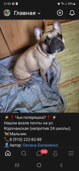 Пропала собака французский бульдог мальчик просьба нашедшего позвонить по телефону ...